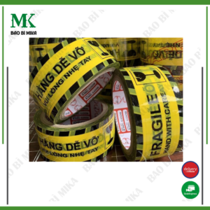 - Bằng keo hàng dễ vỡ là loại băng keo in sẵn dòng chữ hàng dễ vỡ trên nền màu vàng nổi bật giúp cho quá trình vận chuyển được an toàn hơn.